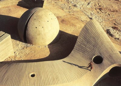 Renommées par ses réalisations monumentales qui s’intègrent dans l’environnement, ses œuvres sont une invitation au voyage: le visiteur est invité à se déplacer au sein du complexe ou à suivre un parcours. Le cadre fait parti de la création même. Chacun vit une expérience particulière, personnelle et forte. En utilisant des matériaux brut, tels que l’eau, le sable, le béton, l’acier, la pierre… ou même le vent ou le soleil, ses œuvres s’intègrent dans l’espace naturel, elles font partie du paysage.